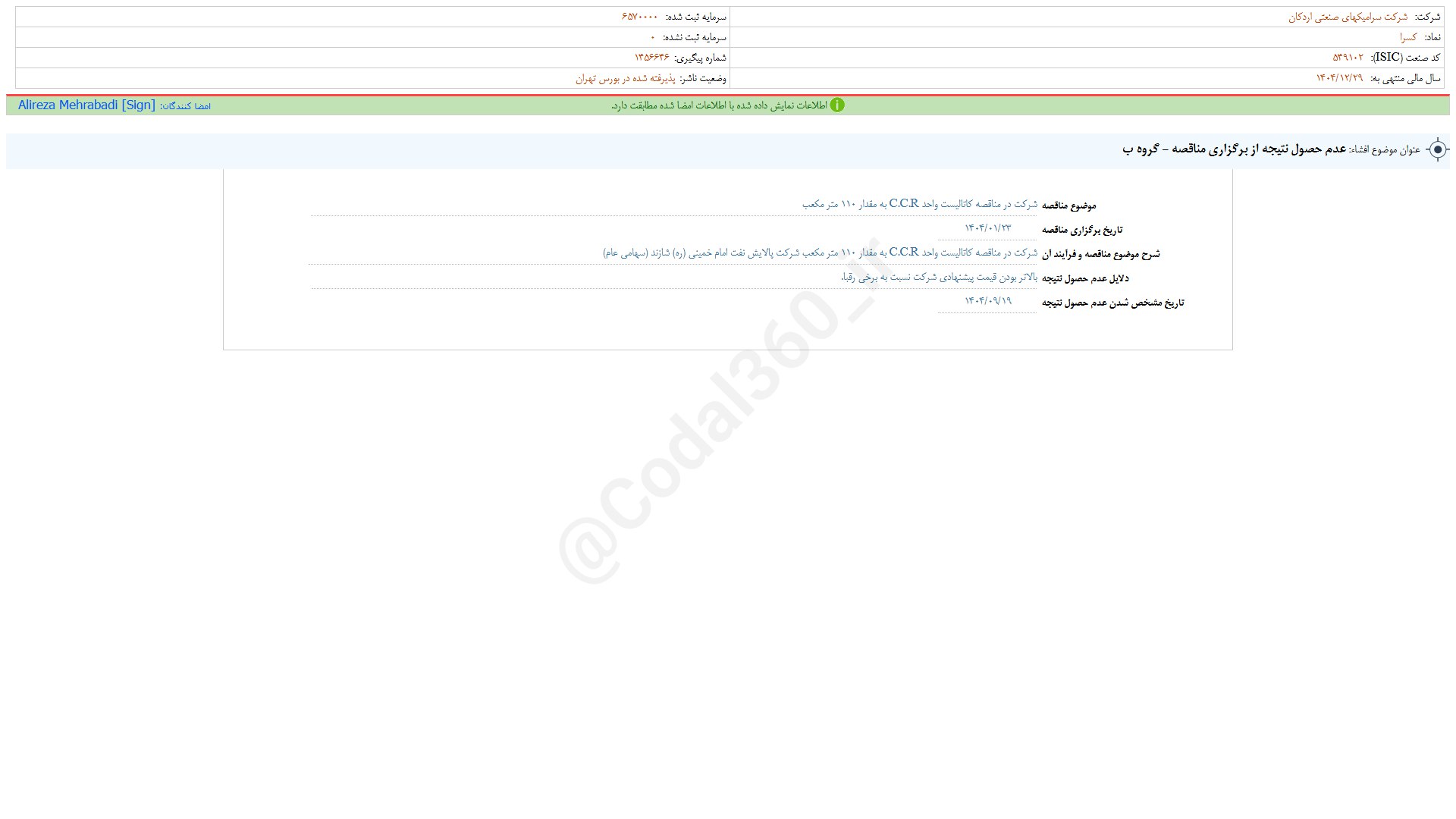 تحلیل کسرا (سرامیکهایصنعتیاردکان / بازار اول (تابلوی اصلی) بورس)