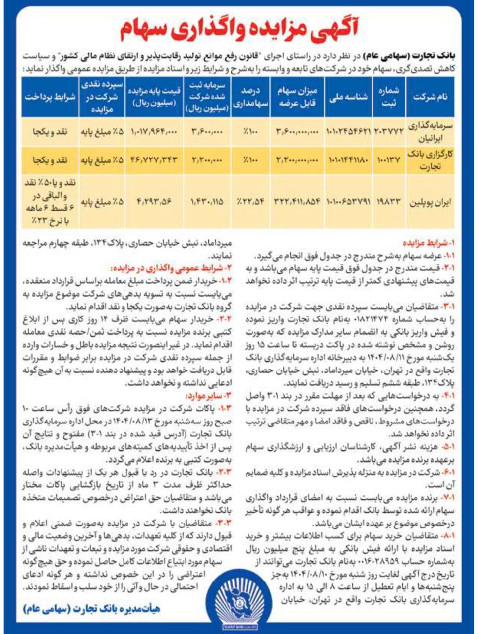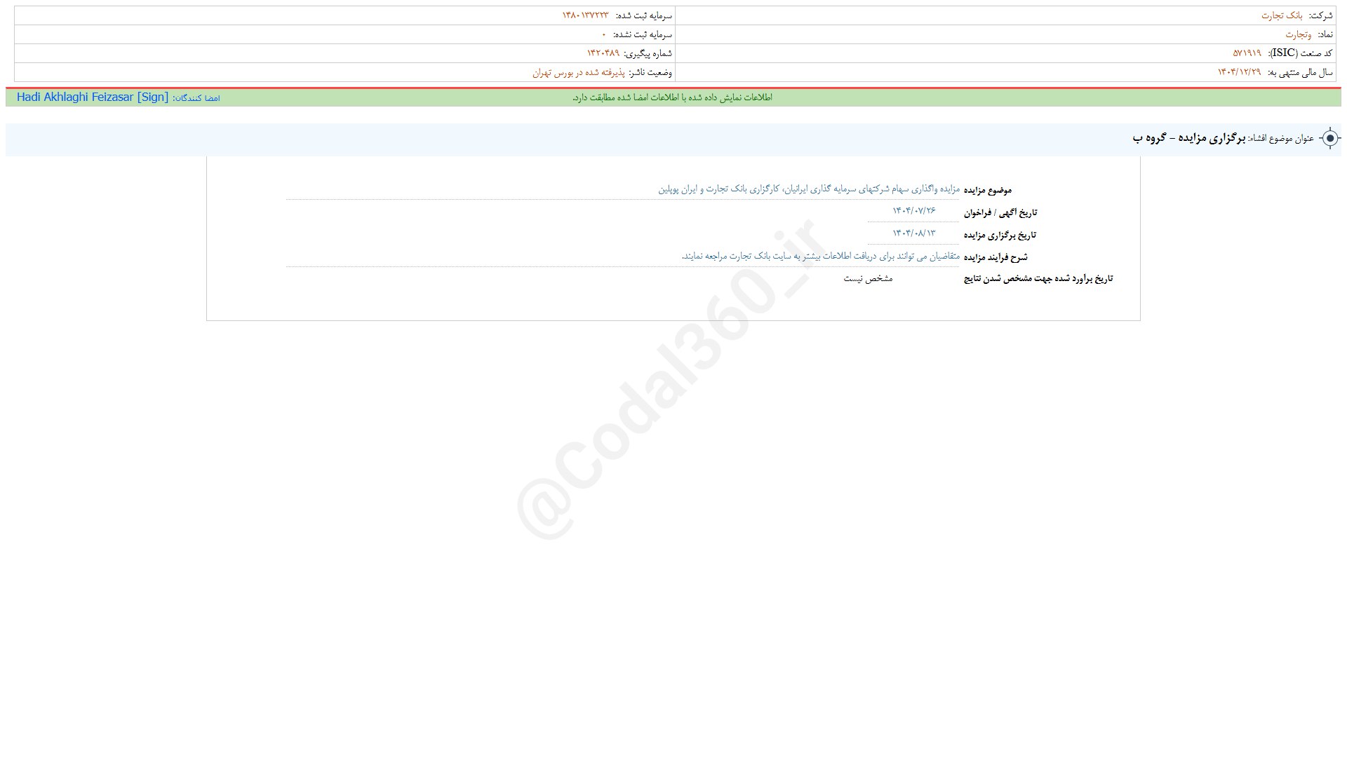 تحلیل وتجارت (بانک تجارت / بازار دوم بورس)