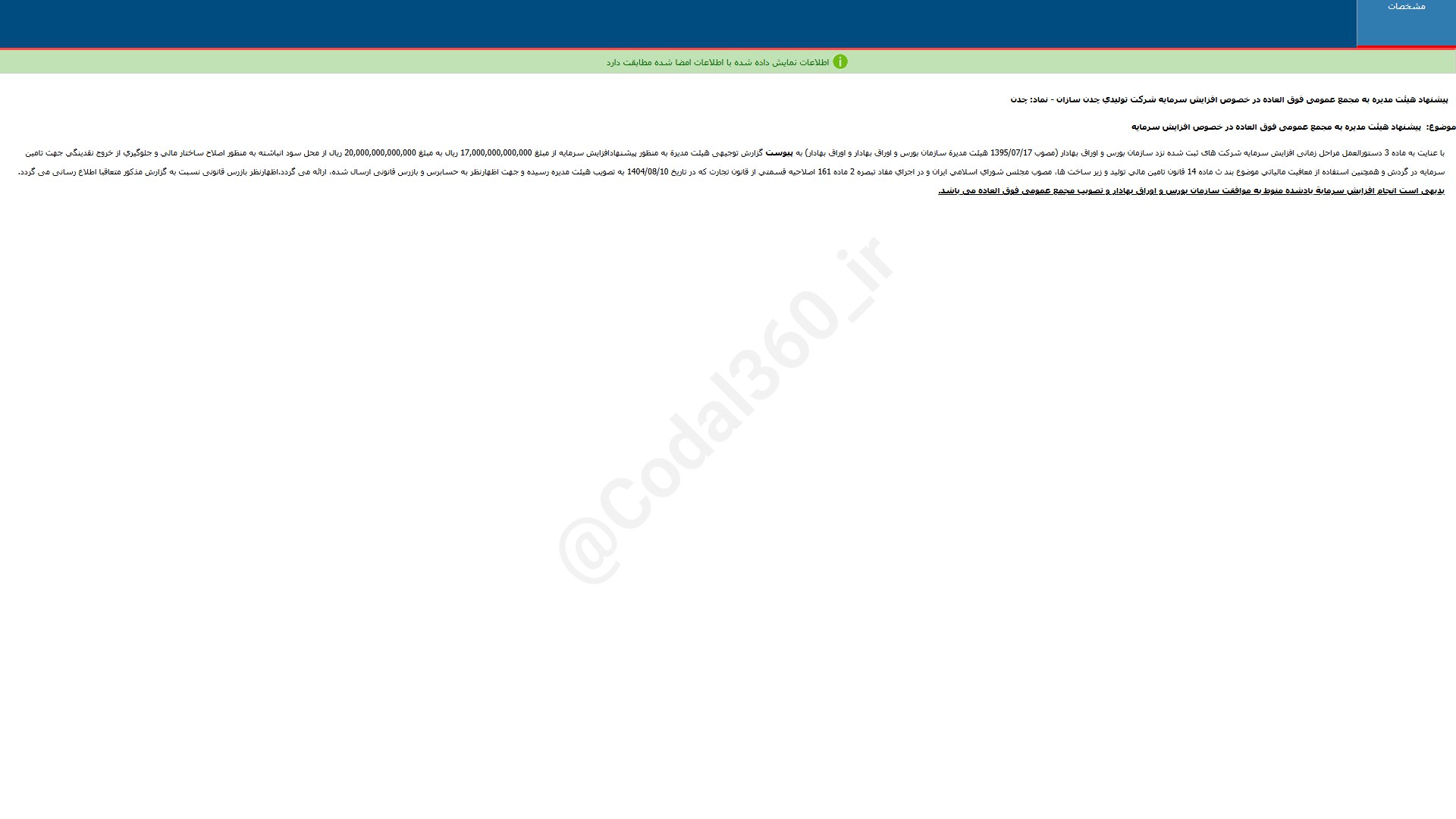 پیشنهاد هیئت مدیره در خصوص افزایش سرمایه 17 ...