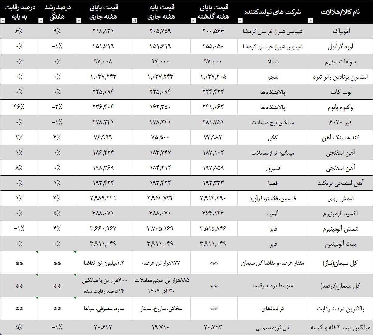 تغییرات هفته اخیر