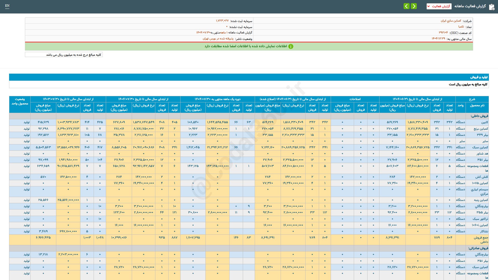 تحلیل تکمبا (کمباین سازی ایران / بازار اول (تابلوی فرعی) بورس)