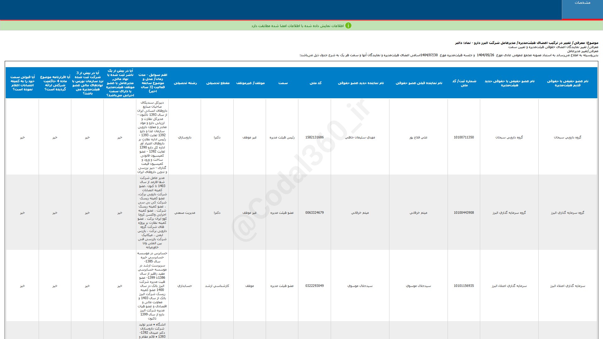 تحلیل دالبر (البرزدارو / بازار اول (تابلوی اصلی) بورس)
