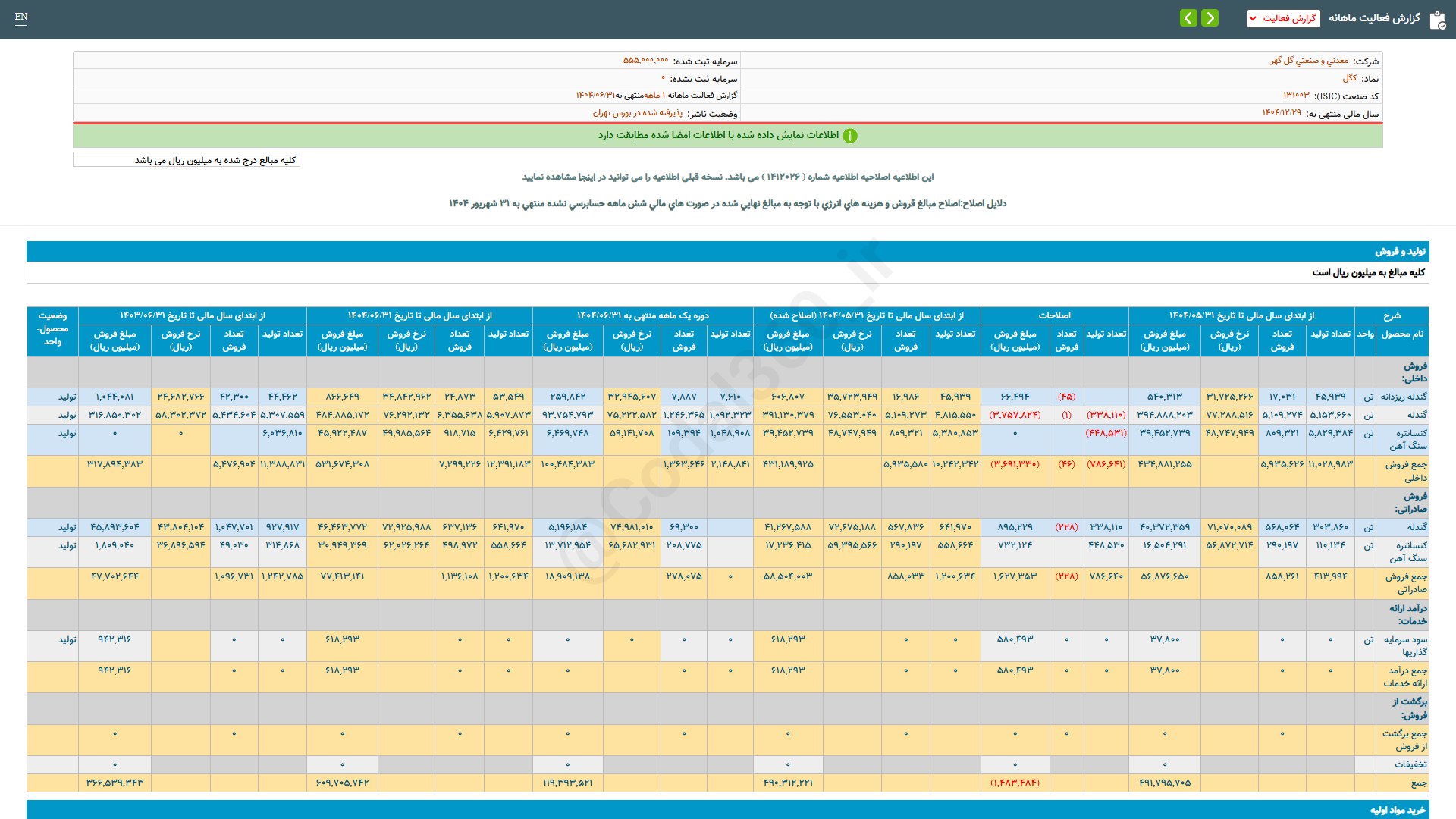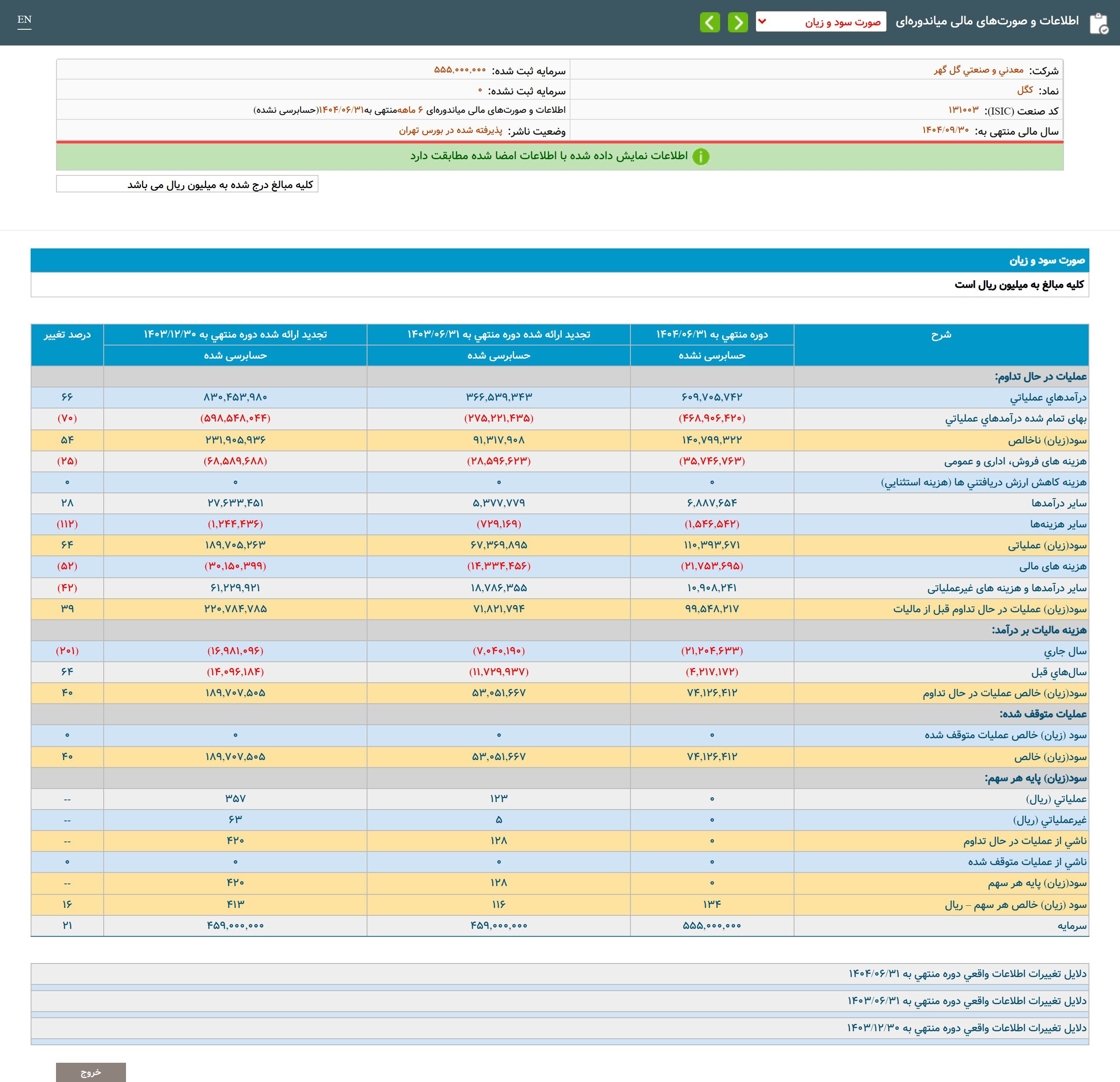 کگل (معدنی و صنعتی گل گهر / بازار اول (تابلوی اصلی) بورس)