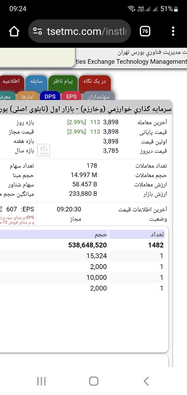 تحلیل وخارزم (سرمایه گذاری خوارزمی / بازار اول (تابلوی اصلی) بورس)