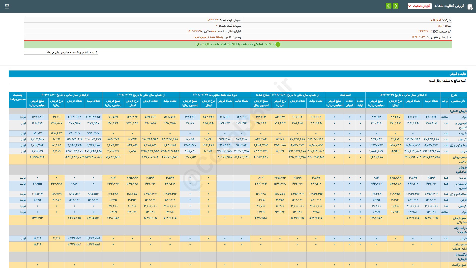 تحلیل دیران (ایراندارو / بازار اول (تابلوی فرعی) بورس)
