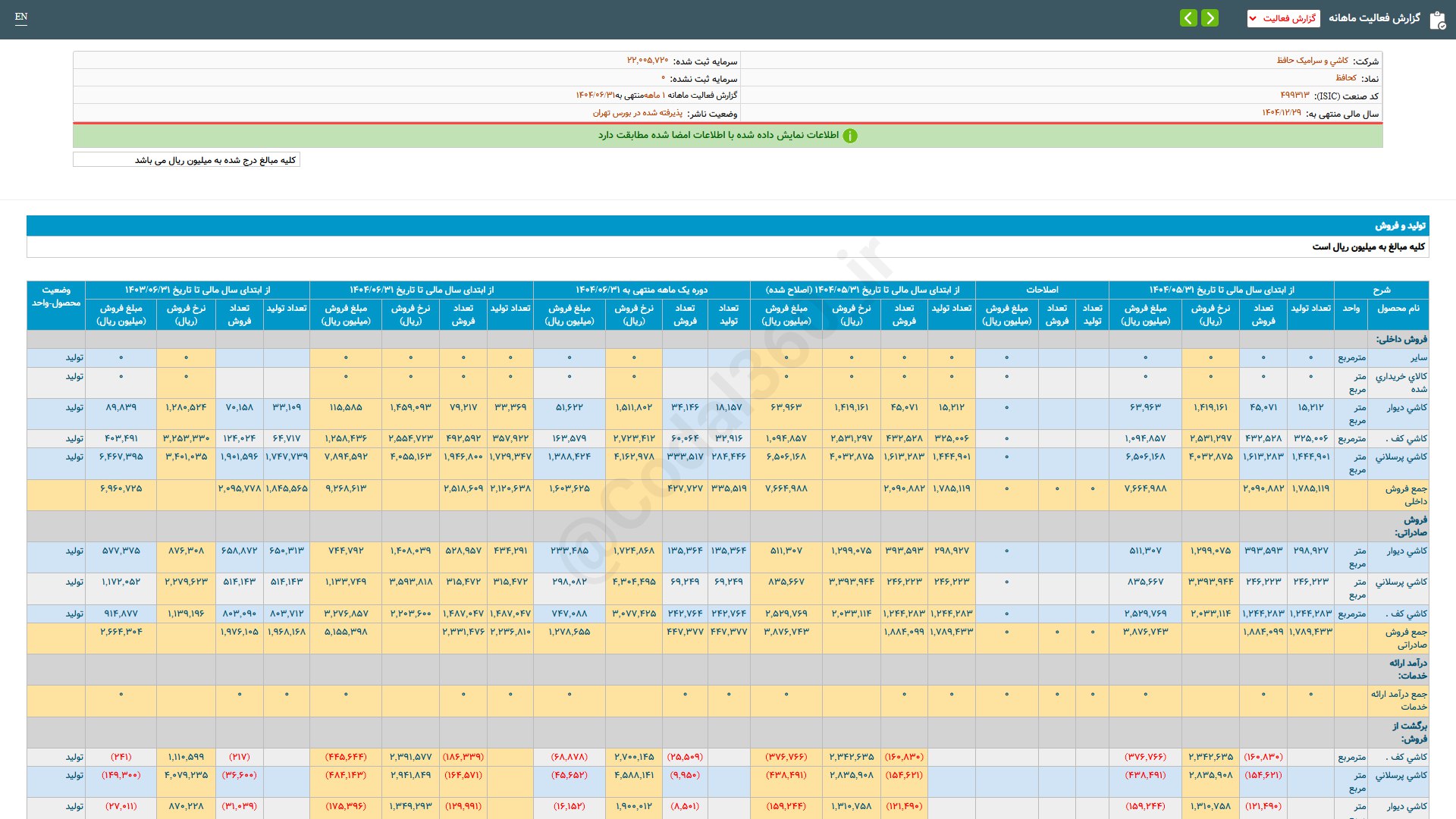 تحلیل کحافظ (کاشی وسرامیک حافظ / بازار اول (تابلوی فرعی) بورس)