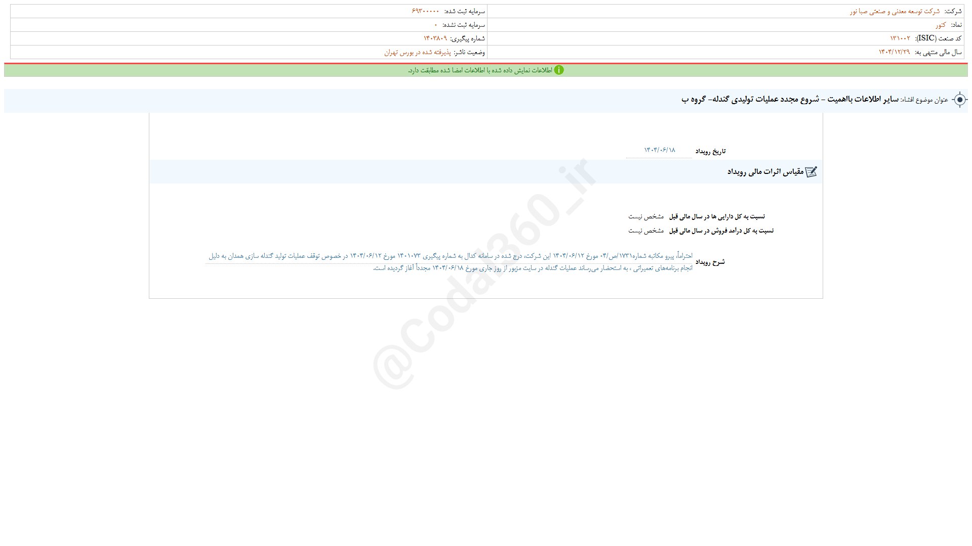 تحلیل کنور (توسعه معدنی و صنعتی صبانور / بازار دوم بورس)