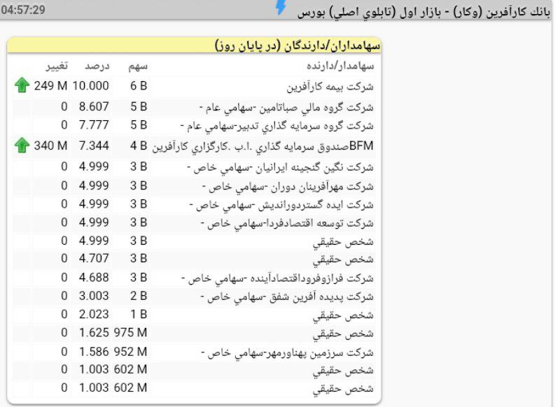 تحلیل وکار (بانک کارآفرین / بازار اول (تابلوی اصلی) بورس)