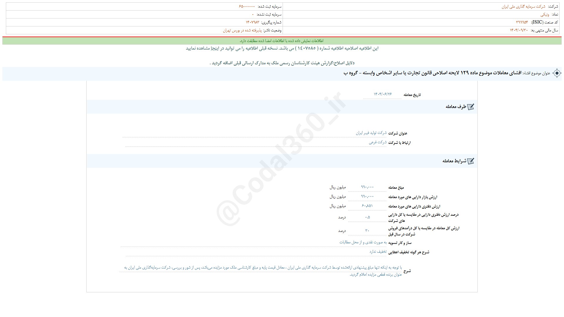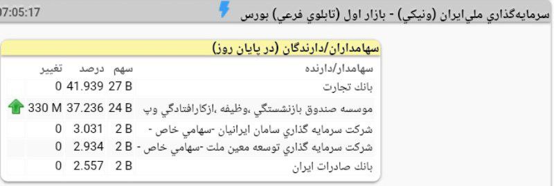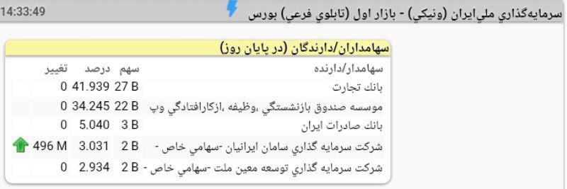 تحلیل ونیکی (سرمایهگذاری ملیایران / بازار اول (تابلوی فرعی) بورس)
