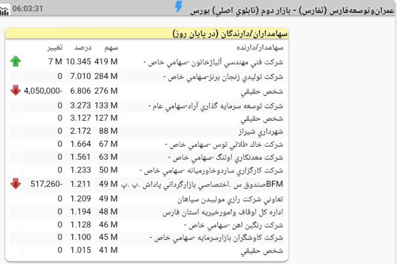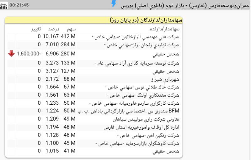 تحلیل ثفارس (عمرانوتوسعهفارس / بازار اول (تابلوی فرعی) بورس)