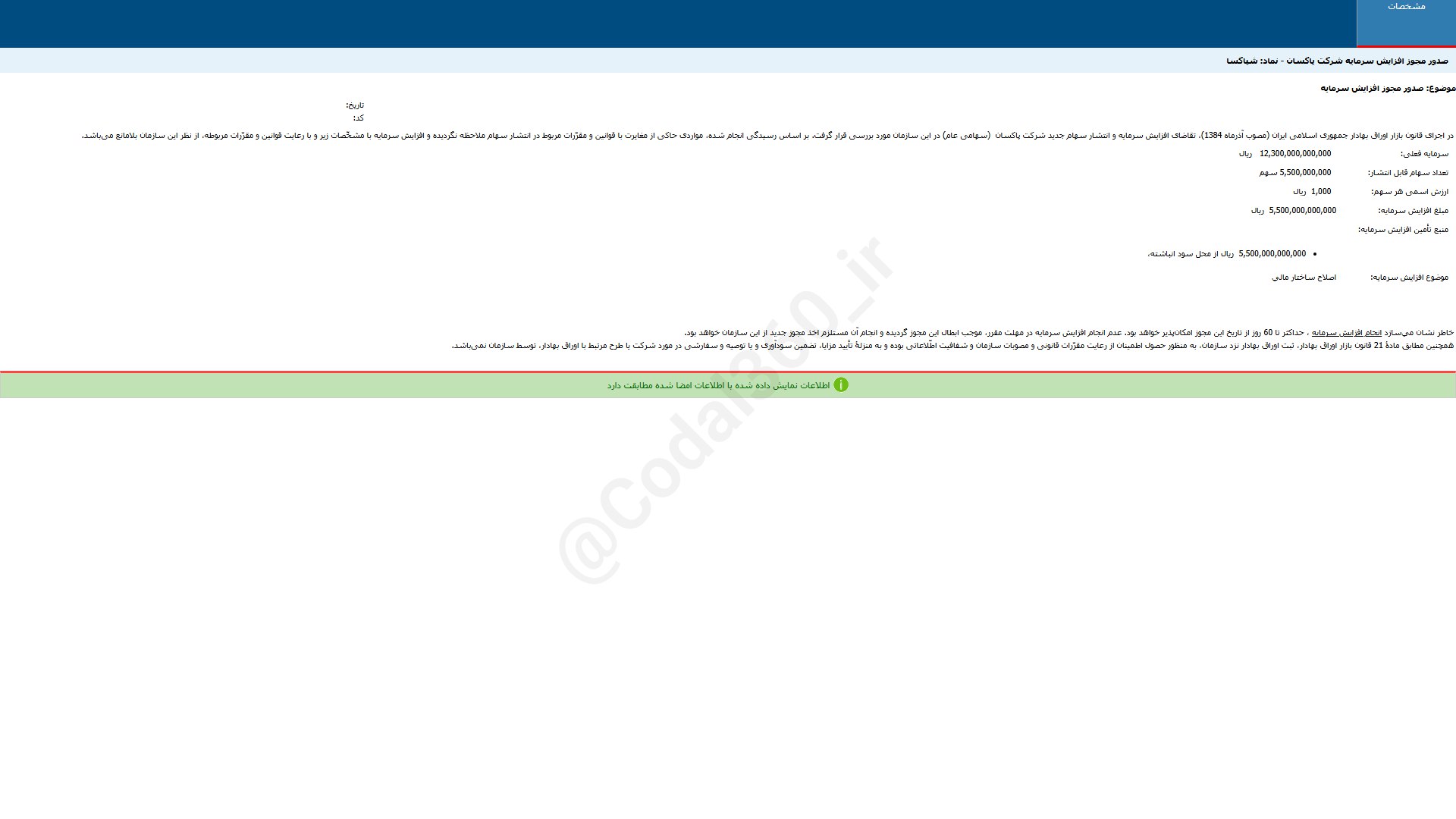 تحلیل شپاکسا (پاکسان / بازار اول (تابلوی فرعی) بورس)