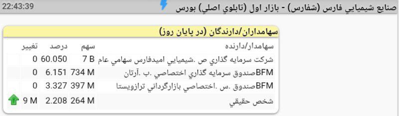 تحلیل شفارس (صنایع شیمیایی فارس / بازار اول (تابلوی اصلی) بورس)