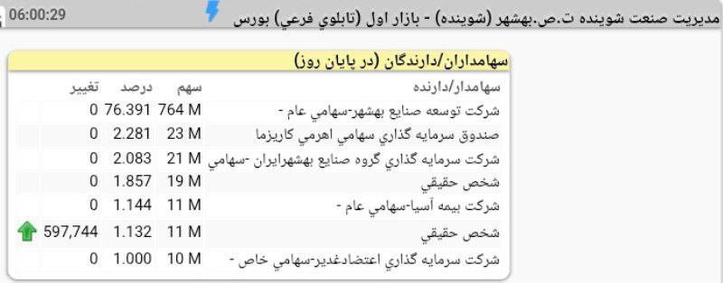 تحلیل شوینده (مدیریت صنعت شوینده ت.ص.بهشهر / بازار اول (تابلوی فرعی) بورس)