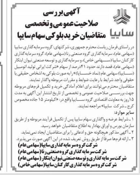 🟠علی شیخ زاده مدیرعامل #خساپا :باید طبق قانون ، سهام تودلی سایپا را...