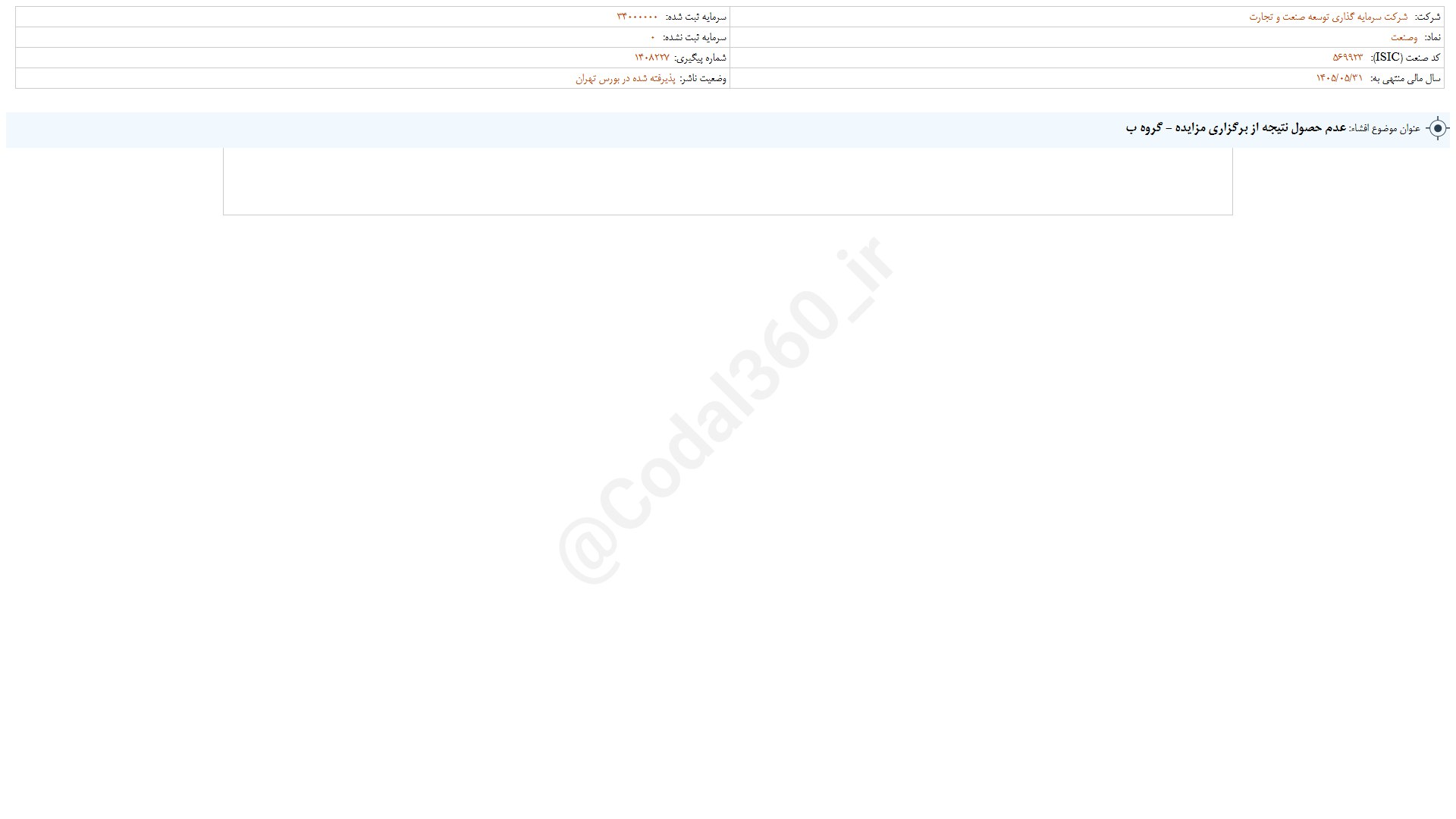 تحلیل وصنعت (سرمایه گذاری توسعه صنعت وتجارت / بازار اول (تابلوی فرعی) بورس)