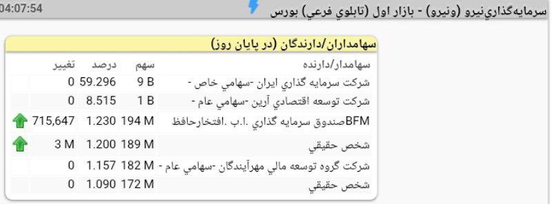 تحلیل ونیرو (سرمایهگذارینیرو / بازار اول (تابلوی اصلی) بورس)