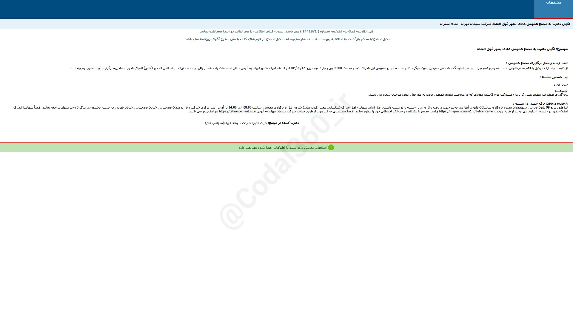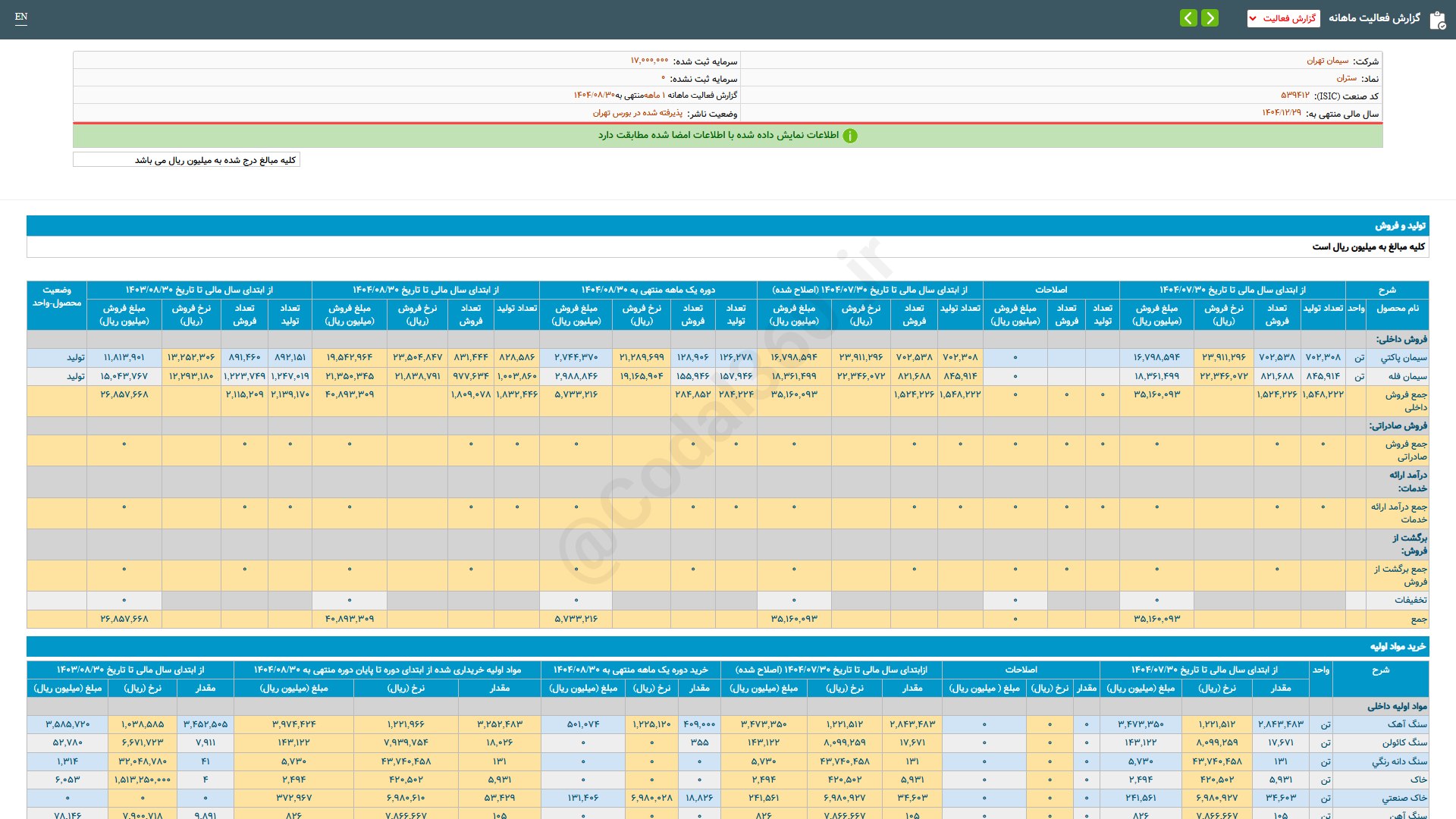 ستران (سیمان تهران / بازار اول (تابلوی اصلی) بورس)