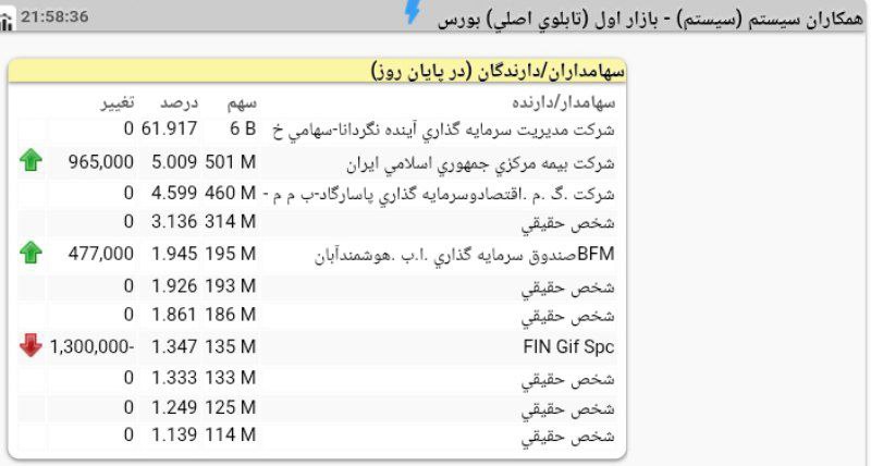 تحلیل سیستم (همکاران سیستم / بازار اول (تابلوی فرعی) بورس)