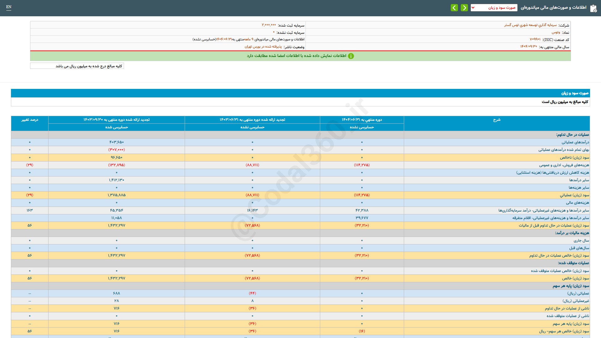 تحلیل وتوس (توسعهشهریتوسگستر / بازار اول (تابلوی فرعی) بورس)