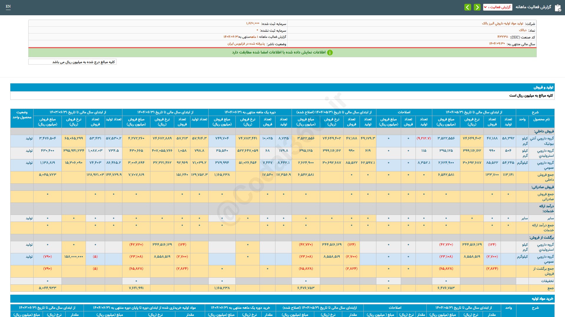 دبالک (مواد اولیه دارویی البرز بالک / بازار اول فرابورس)