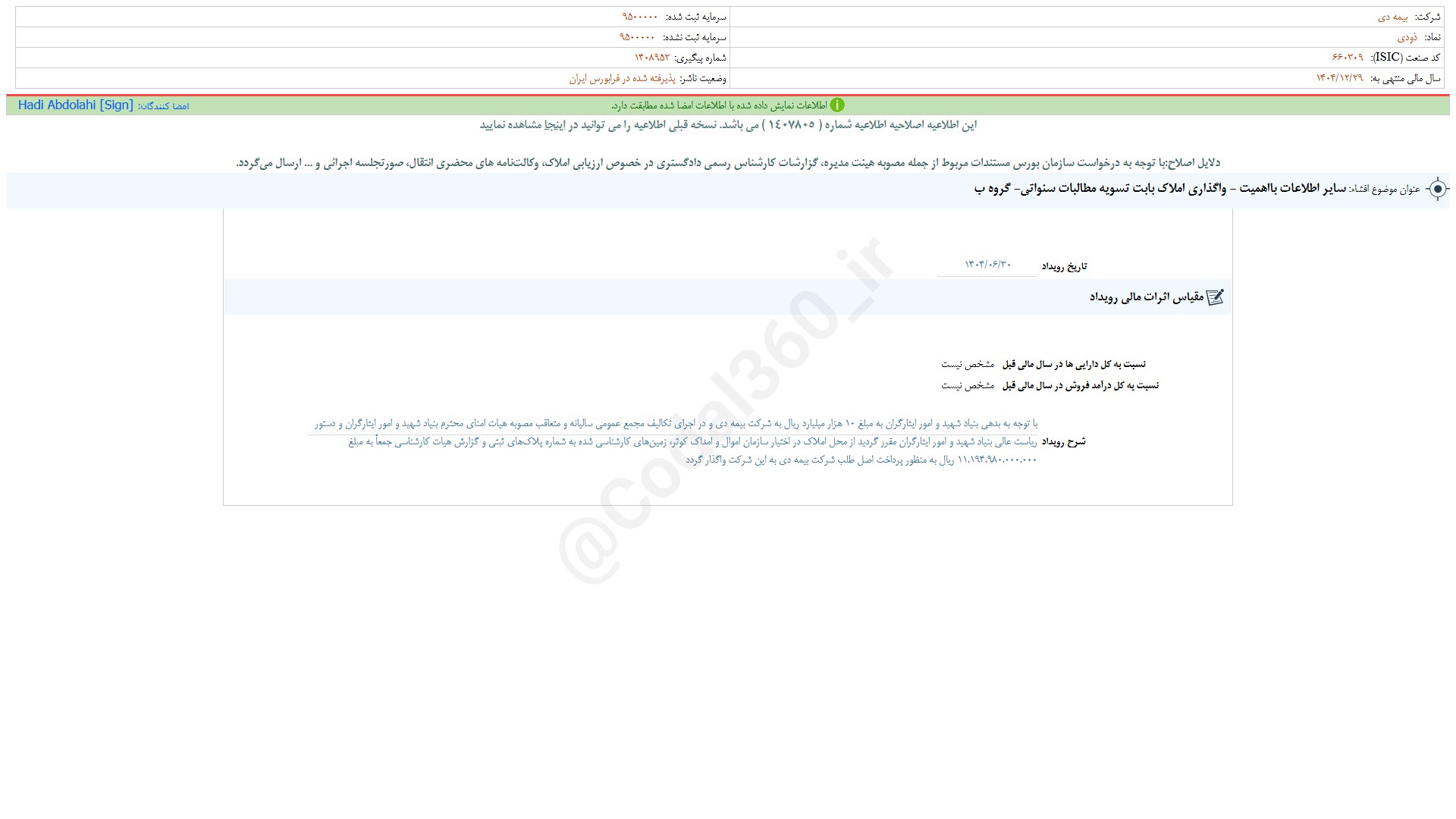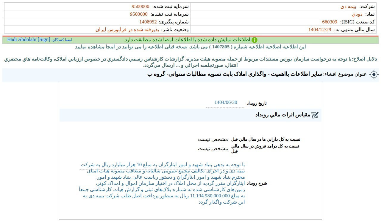 تحلیل ودی (بیمه دی / بازار اول فرابورس)