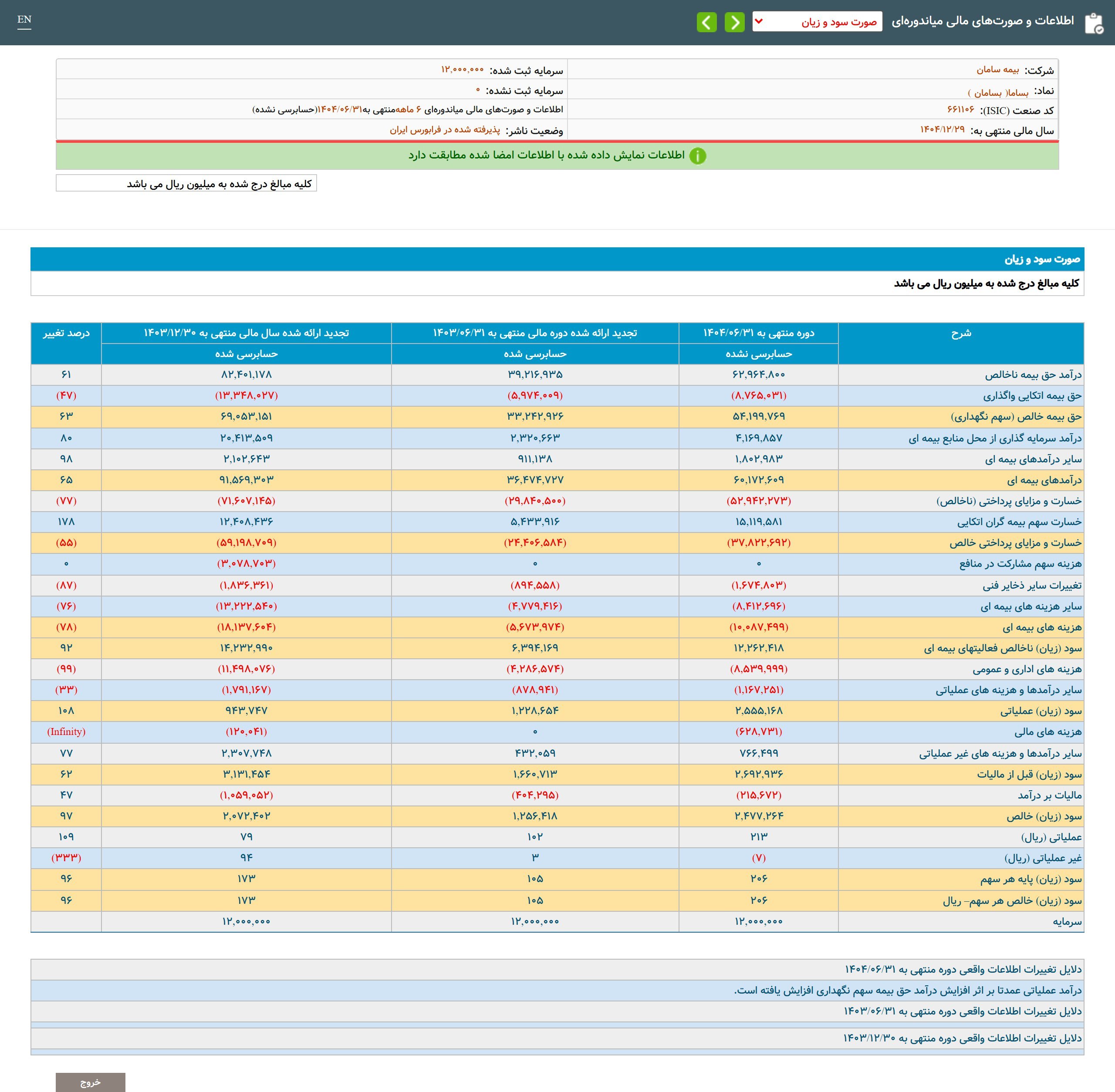 ⚙️ تحلیل تخصصی عملکرد ششماهه «#بساما» — جهش پایدار سودآوری بیمهای...