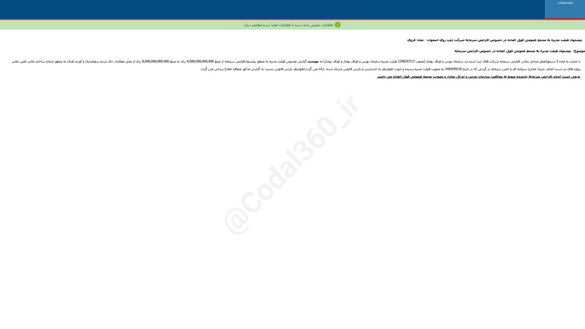 پیشنهاد هیئت مدیره در خصوص افزایش سرمایه 137 درصدی از انباشته