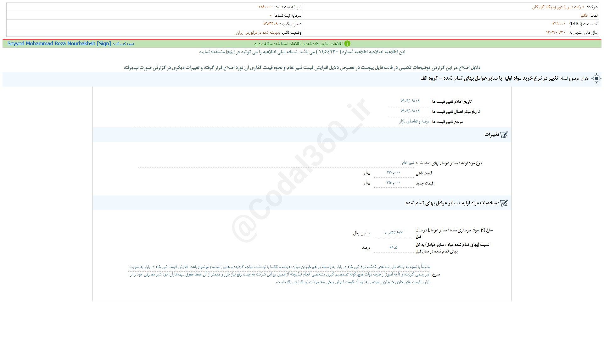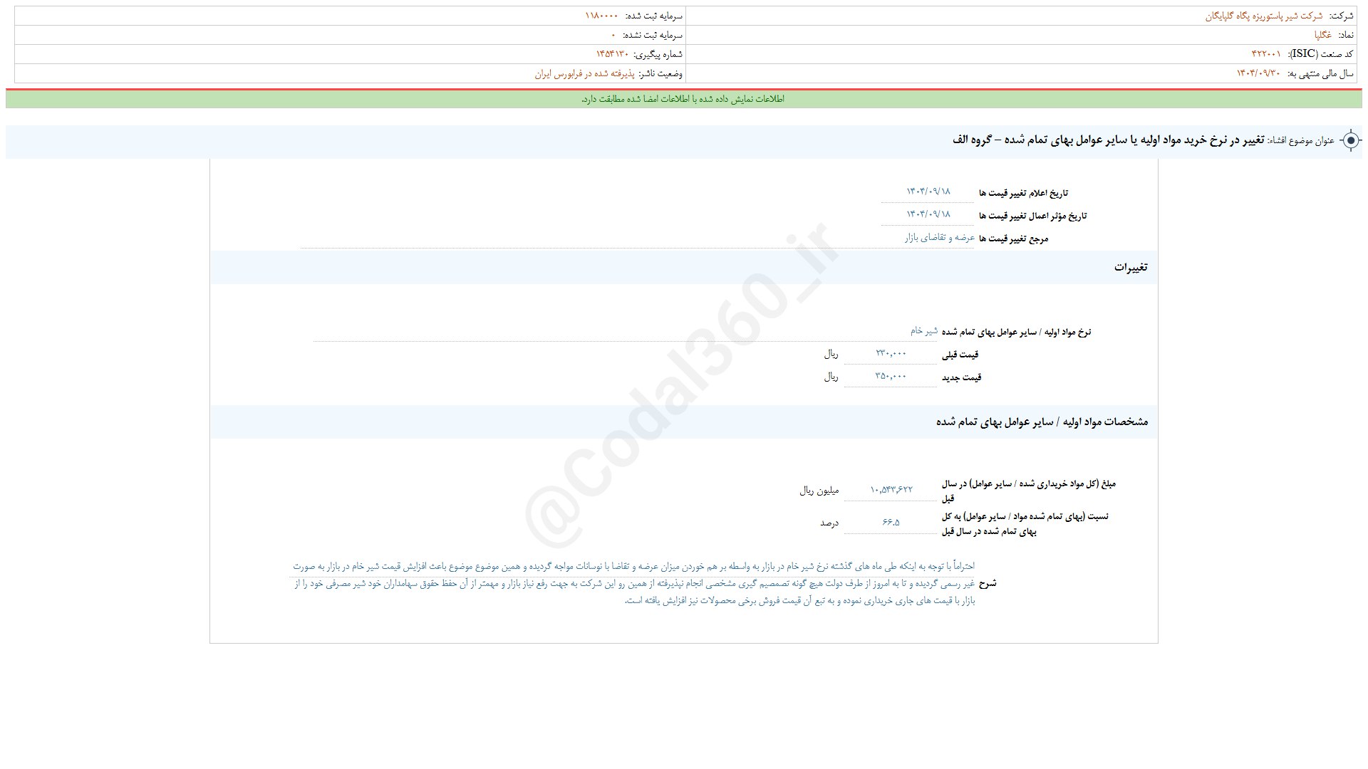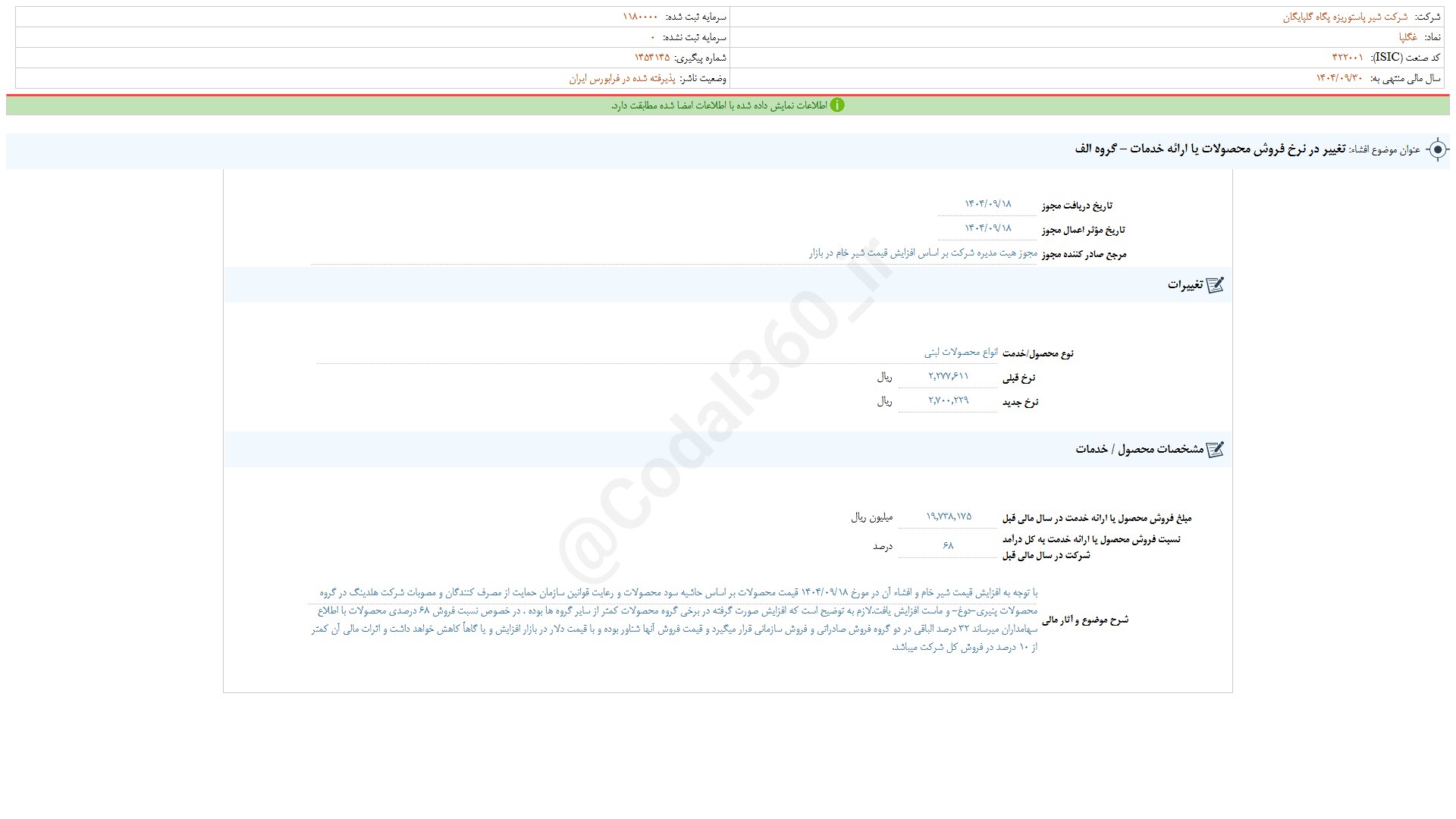 تحلیل غگلپا (شیر پاستوریزه پگاه گلپایگان / بازار اول فرابورس)