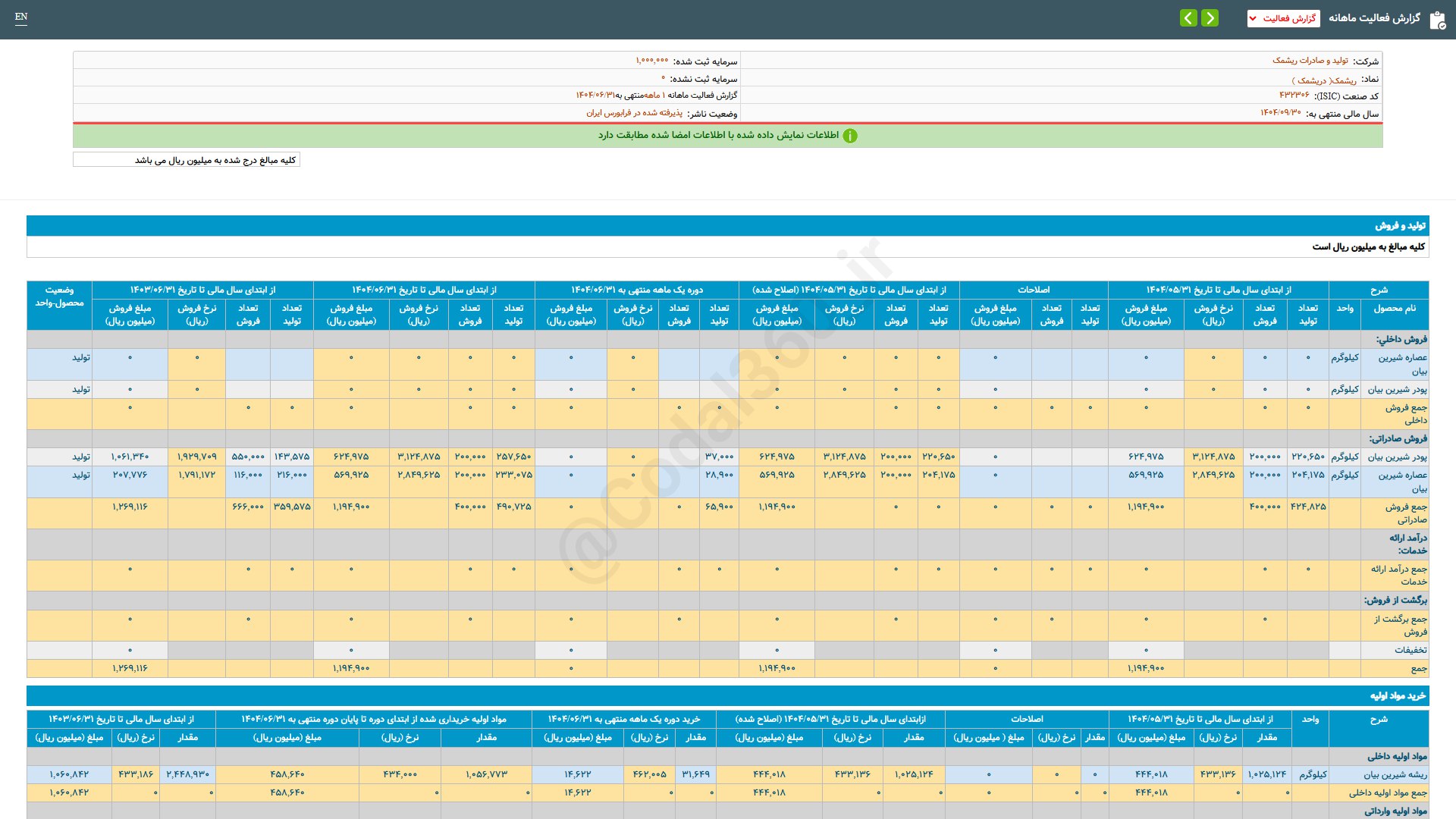 تحلیل ریشمک (تولید و صادرات ریشمک / بازار اول فرابورس)