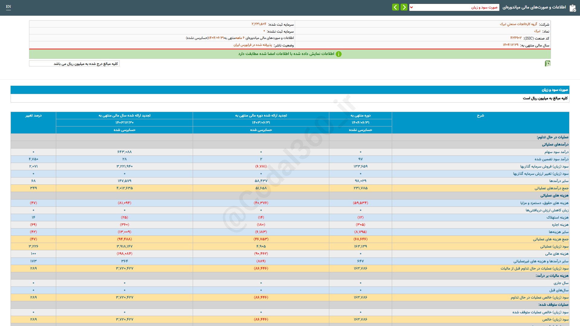 تحلیل تبرک (گروه کارخانجات صنعتی تبرک / بازار دوم فرابورس)