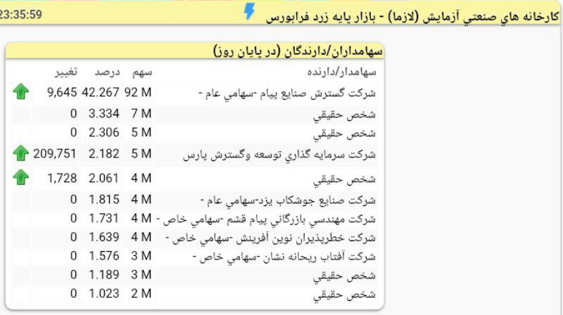 تحلیل (کارخانه های صنعتی آزمایش / بازار پایه زرد فرابورس)