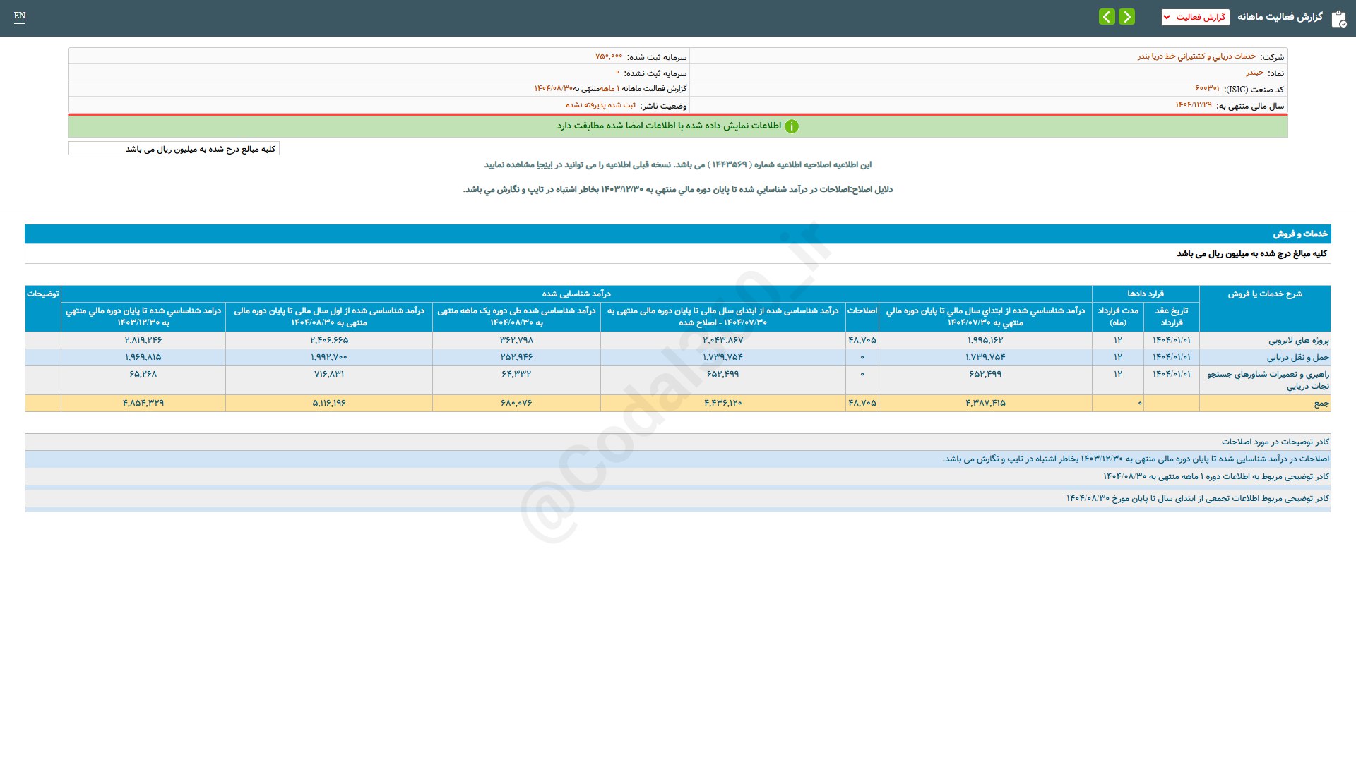 تحلیل (دریایی و کشتیرانی خط دریابندر / بازار پایه زرد فرابورس)