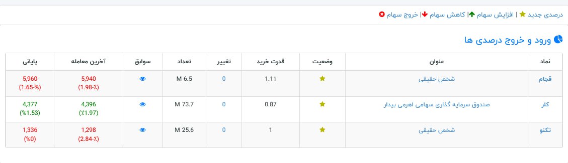 تغییرات هفته اخیر
