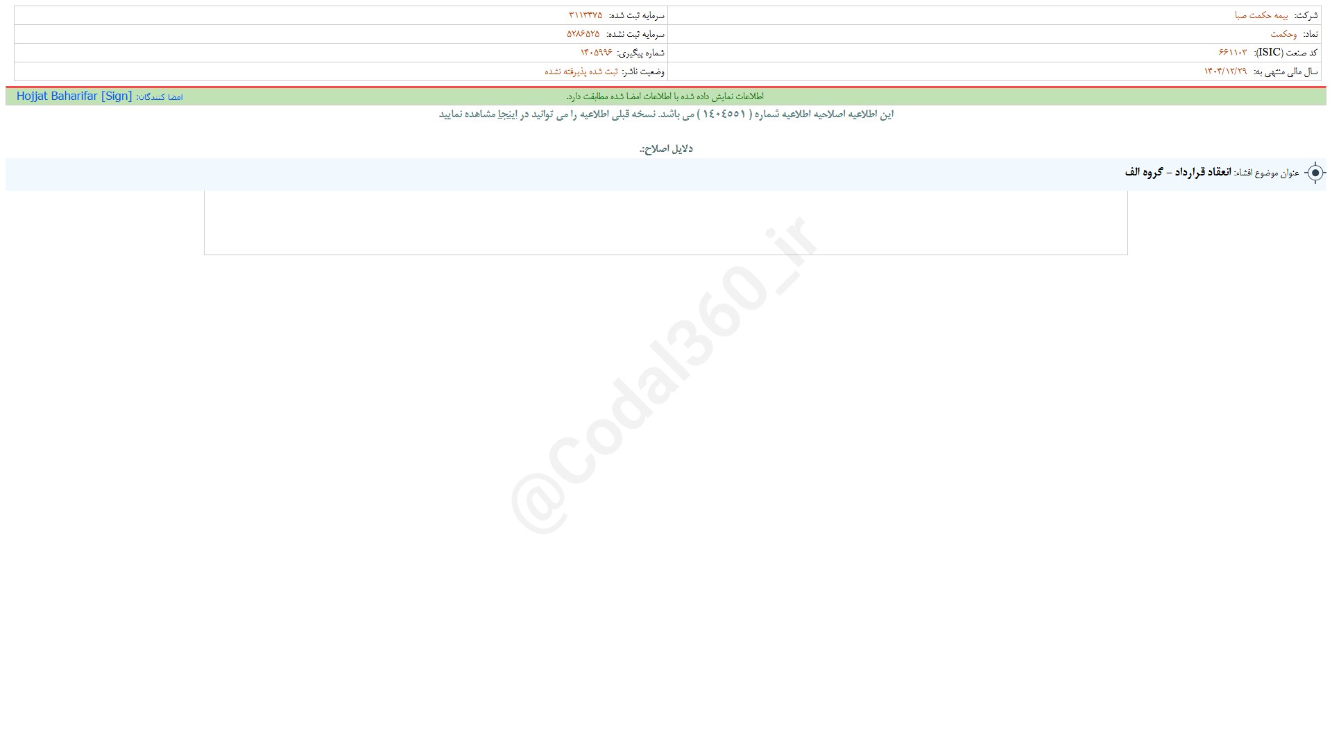 تحلیل (بیمه حکمت صبا / بازار پایه زرد فرابورس)