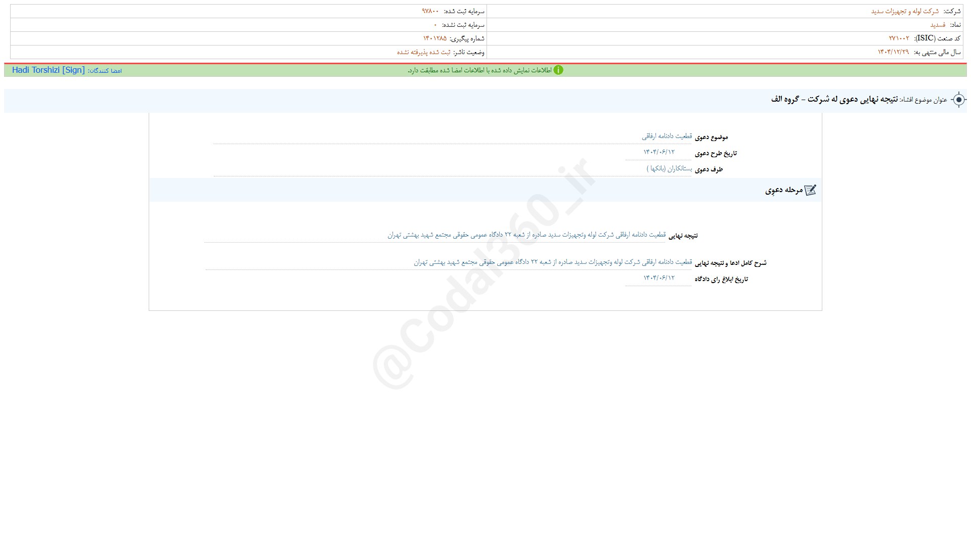 تحلیل (لولهوتجهیزات سدید - ورشکسته / بازار پایه قرمز فرابورس)