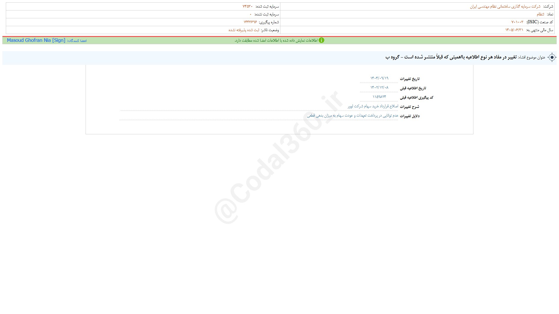 تحلیل (س. ساختمانی نظام مهندسی ایران / بازار پایه زرد فرابورس)