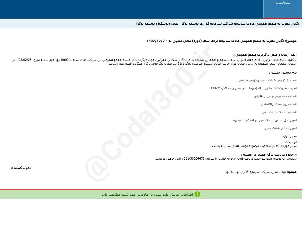 #وتوسکا آگهی دعوت به #مجمع_عمومی_عادی سالیانه #دوره_12_ماهه منتهی به 1402/12/2...