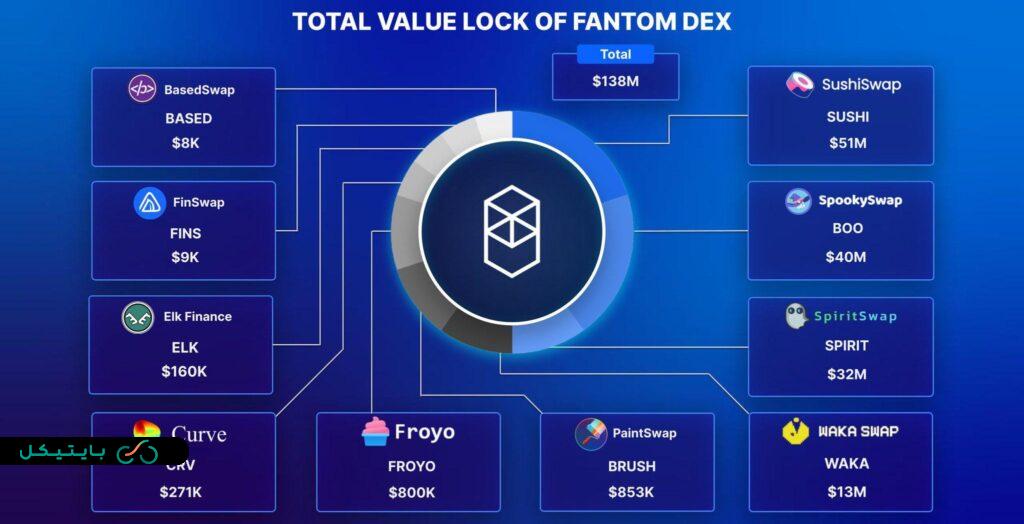اکوسیستم فانتوم یکی از غنیترین اکوسیستمها در دنیای بلاکچین است که شامل طیف گستردهای از پروژههای DeFi، NFT و سایر برنامههای غیرمتمرکز میشود. برخی از مهمترین اجزای این اکوسیستم عبارتند از: