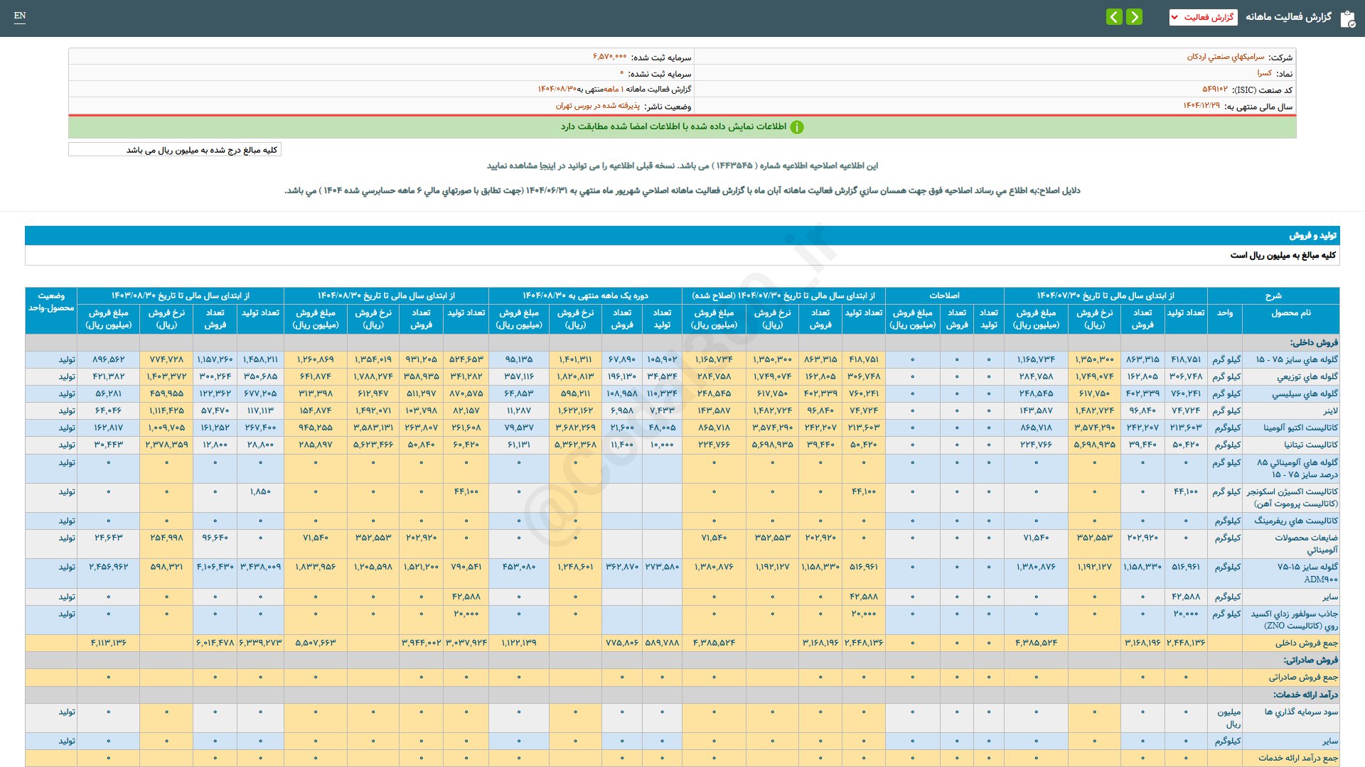 تحلیل های کسرا (سرامیکهایصنعتیاردکان / بازار اول (تابلوی اصلی) بورس)