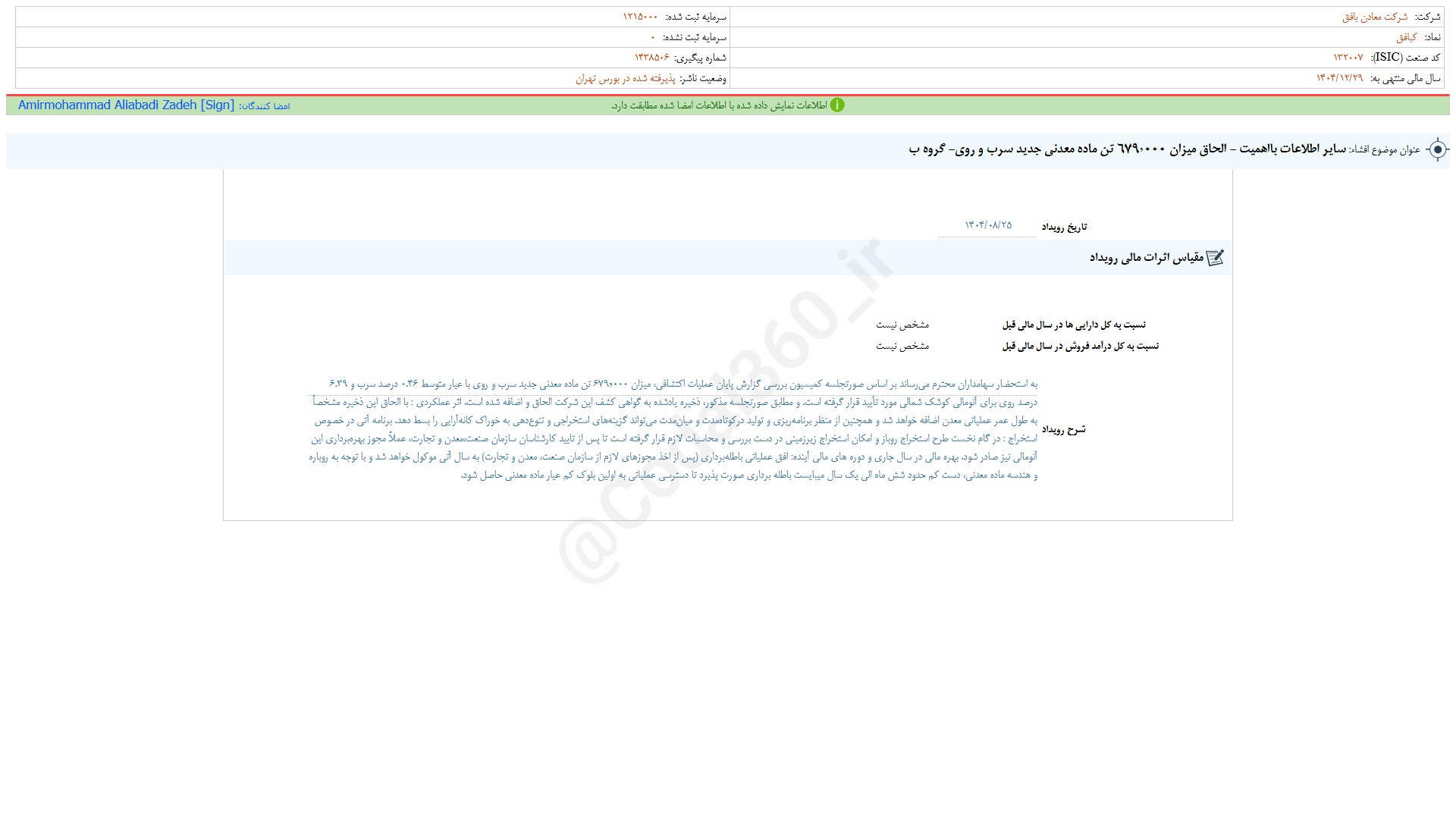 تحلیل های کبافق (معادن بافق / بازار اول (تابلوی فرعی) بورس)