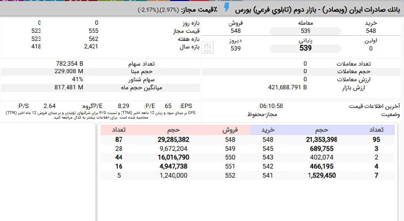 تحلیل های وبصادر (بانک صادرات ایران / بازار دوم بورس)