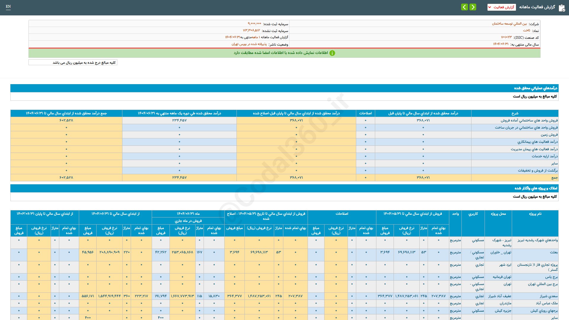 تحلیل های ثاخت (بینالمللیتوسعهساختمان / بازار دوم بورس)