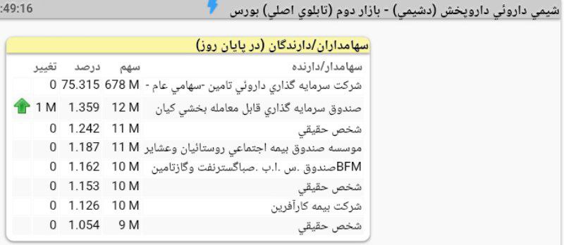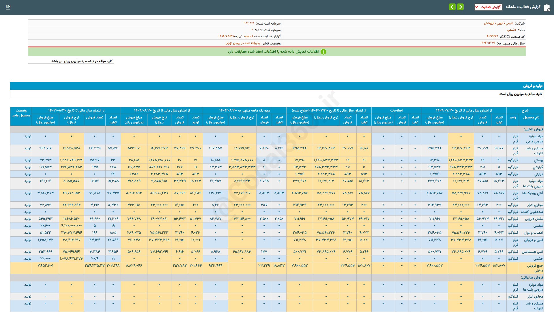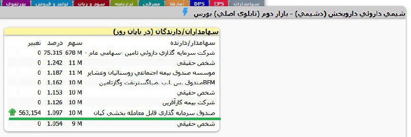 تحلیل های دشیمی (شیمی داروئی داروپخش / بازار اول (تابلوی فرعی) بورس)