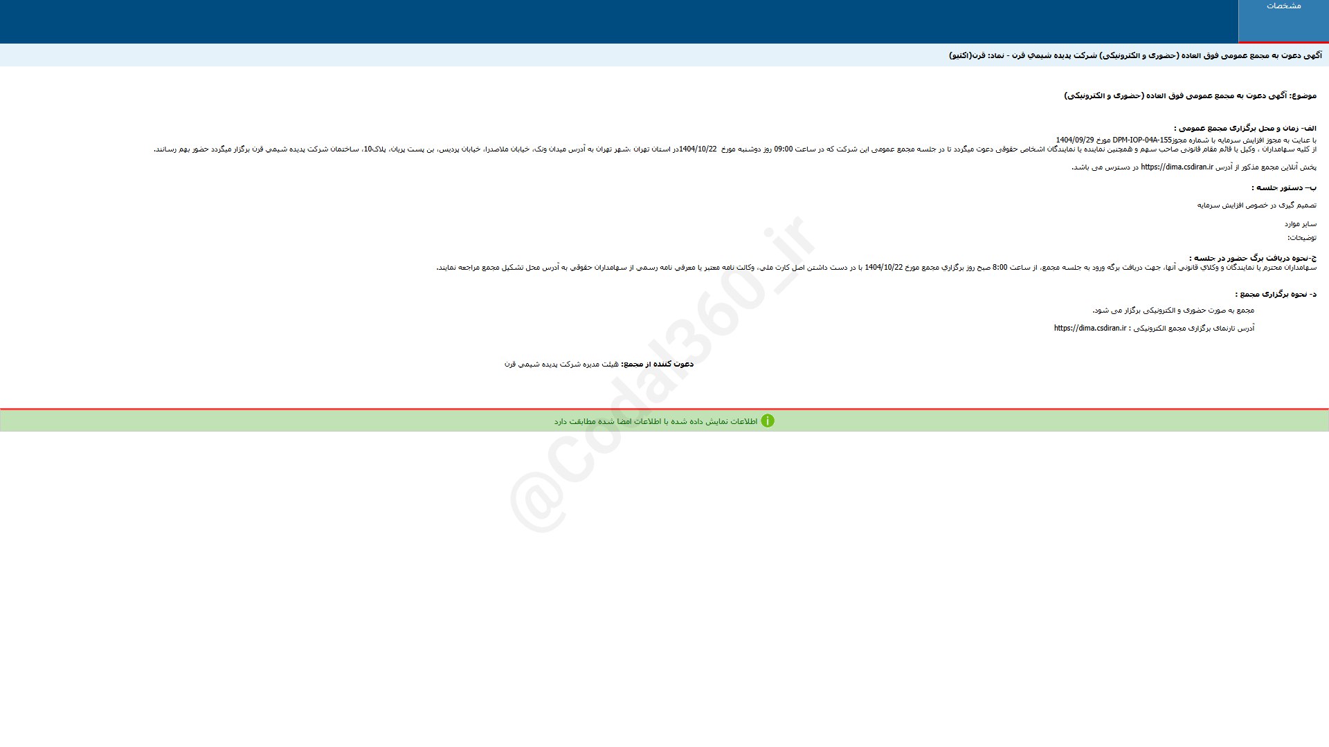 تحلیل های قرن (پدیده شیمی قرن / بازار اول (تابلوی فرعی) بورس)