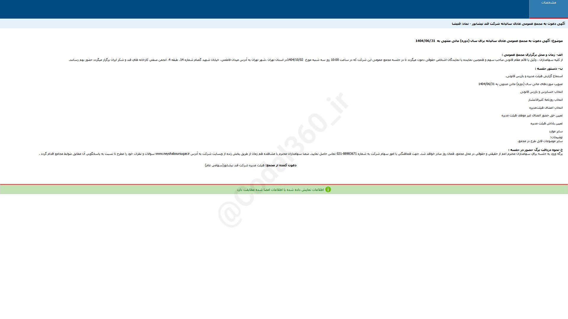 تحلیل های قنیشا (قند نیشابور / بازار اول (تابلوی فرعی) بورس)