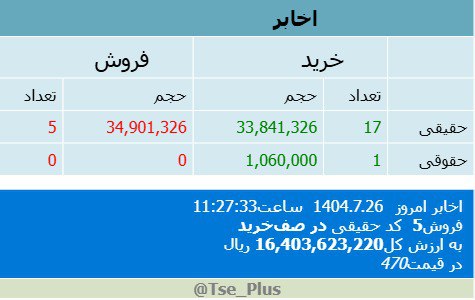 #اخابر از دقایق ابتدایی امروز چند بار در قیمت 470 ریال صف خرید شد.