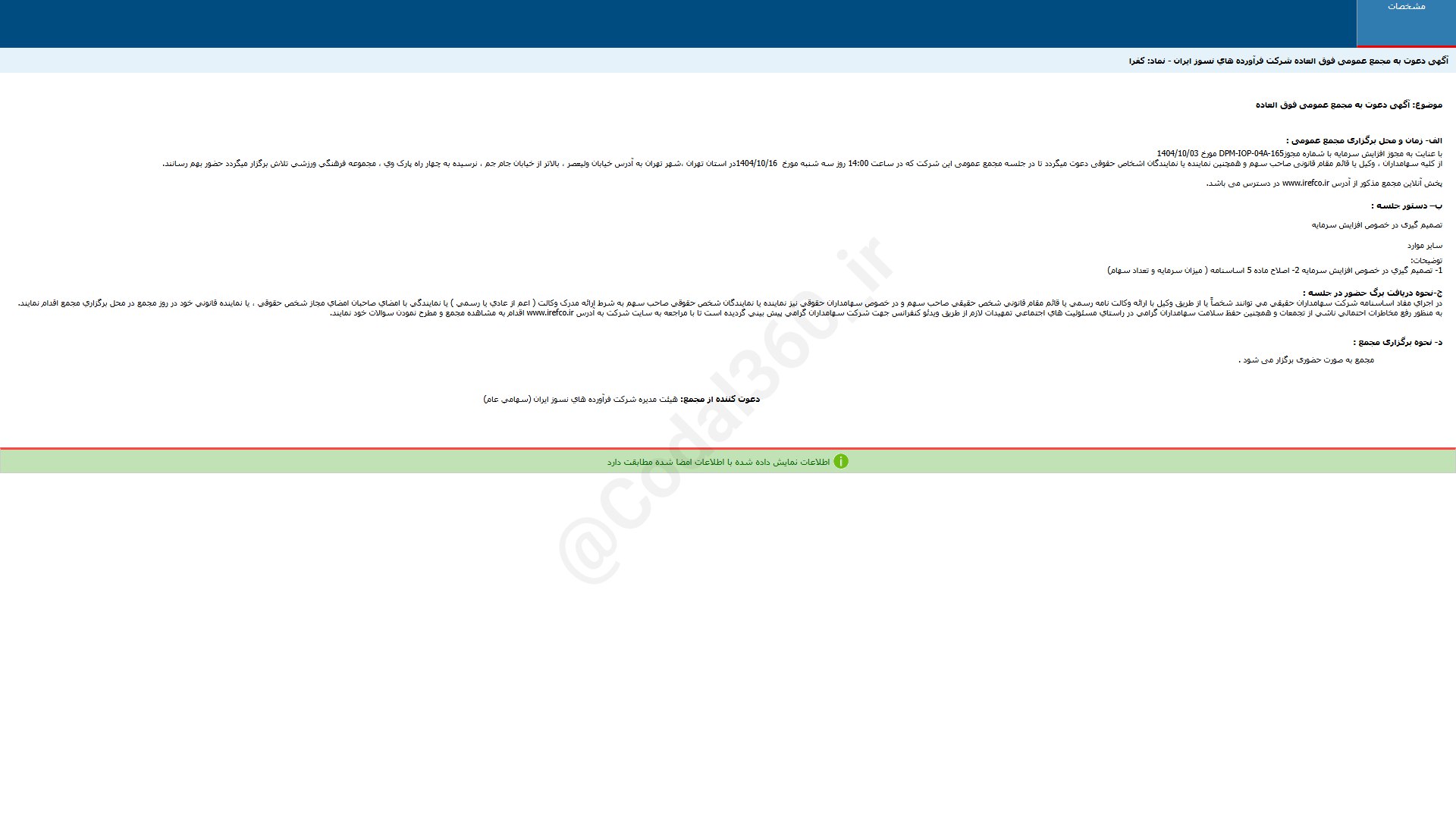 #کفرا آگهی دعوت به مجمع عمومی فوق العاده شرکت فرآورده های نسوز ایرا...
