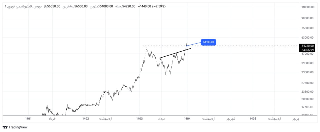 خرید جدید پر ریسک، در صورت داشتن سهام نگهداری و در صورت شکست خط روند آبی فروش