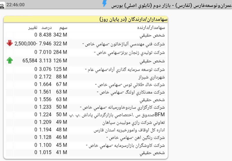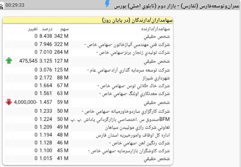 تحلیل های ثفارس (عمرانوتوسعهفارس / بازار اول (تابلوی فرعی) بورس)