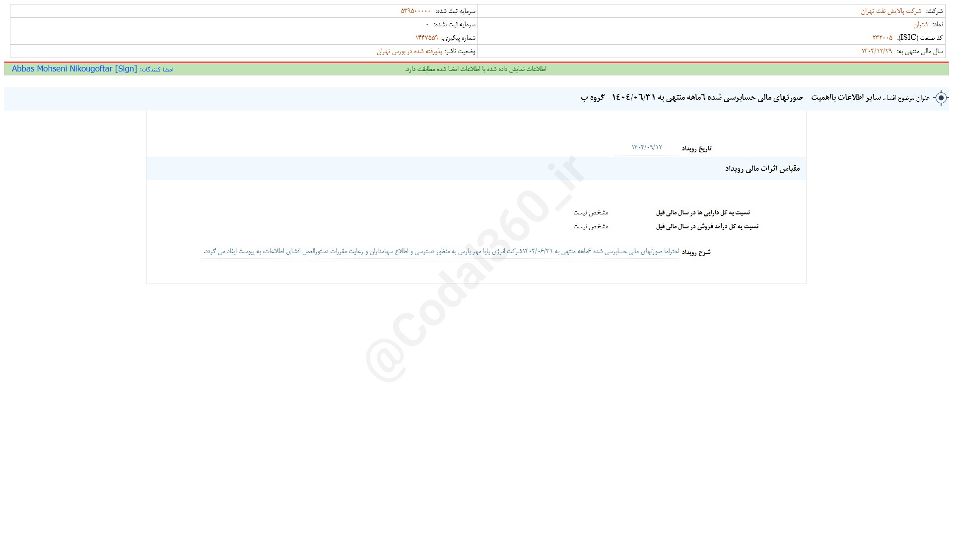 تحلیل های شتران (پالایش نفت تهران / بازار اول (تابلوی فرعی) بورس)